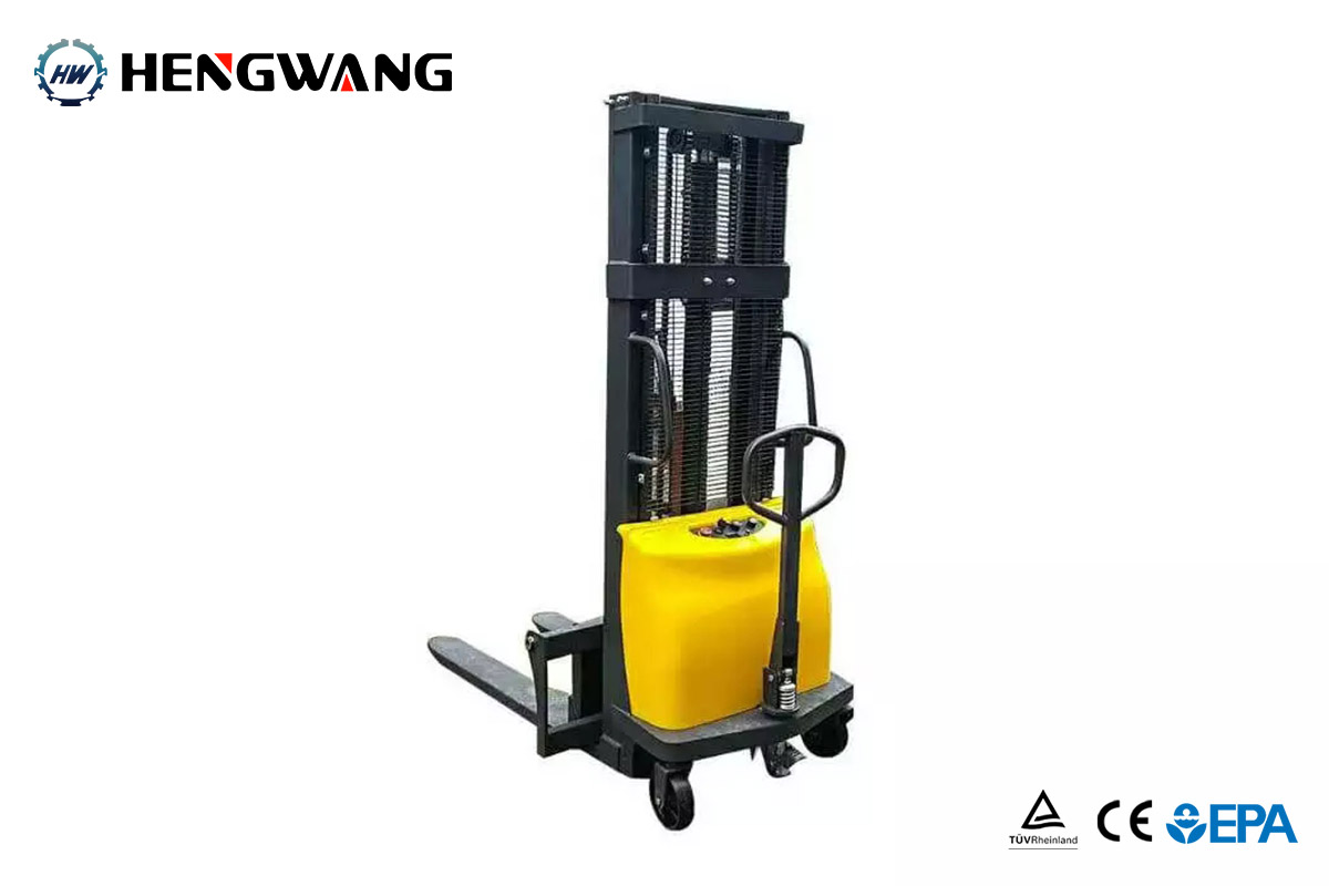 The semi-electric stacker can save much labor when stacking.It can cross very narrow space and easy to carry it everywhere.